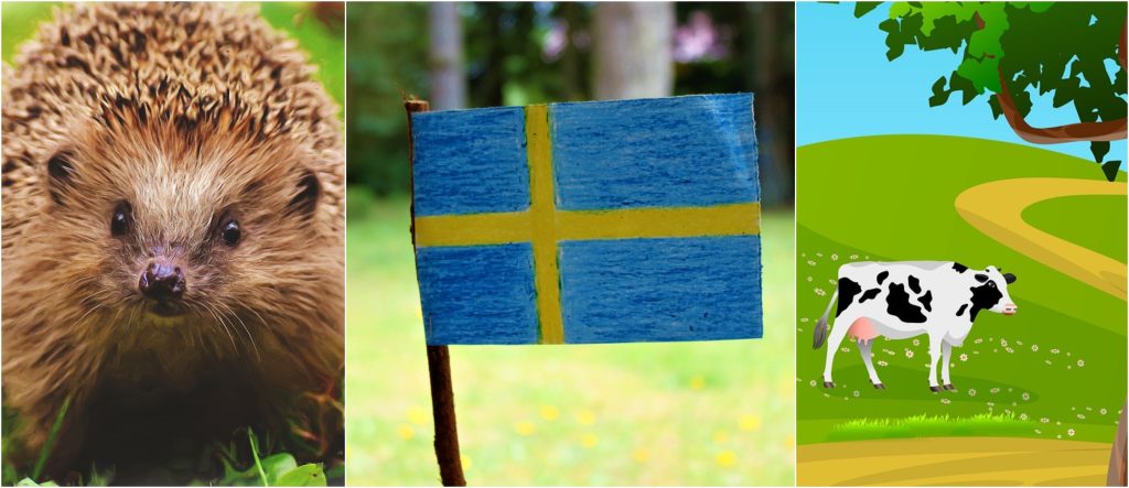 Veckans nyheter har bland annat handlat om igelkottar, svenska flaggan och kossor. Foto: Pixabay.