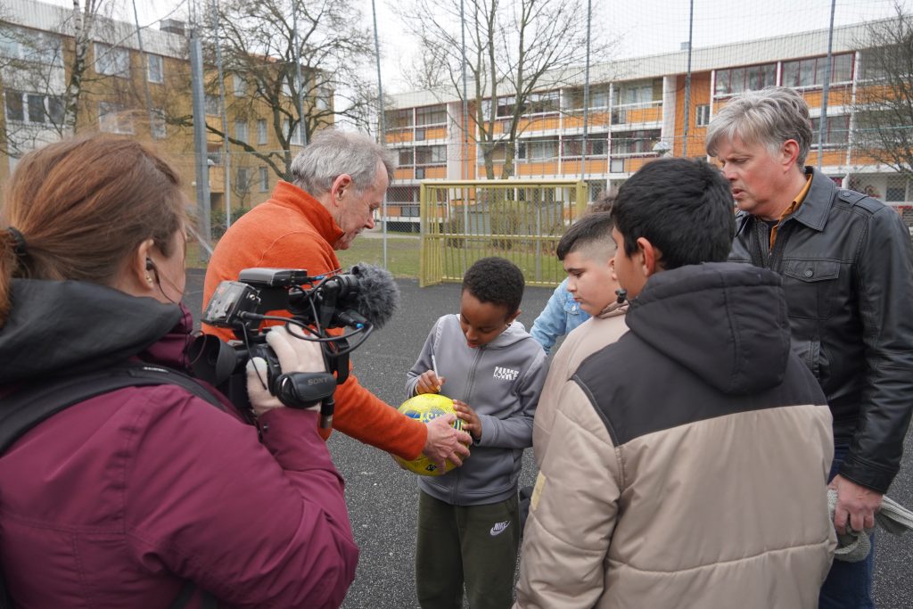 När intervjun var klar frågade SVT om Minibladet ville möta dem i fotboll på Zlatan Court.